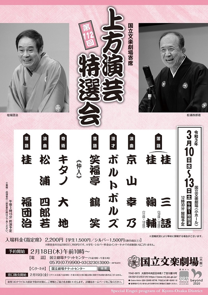 国立文楽劇場の寄席への出演が決定しました♪