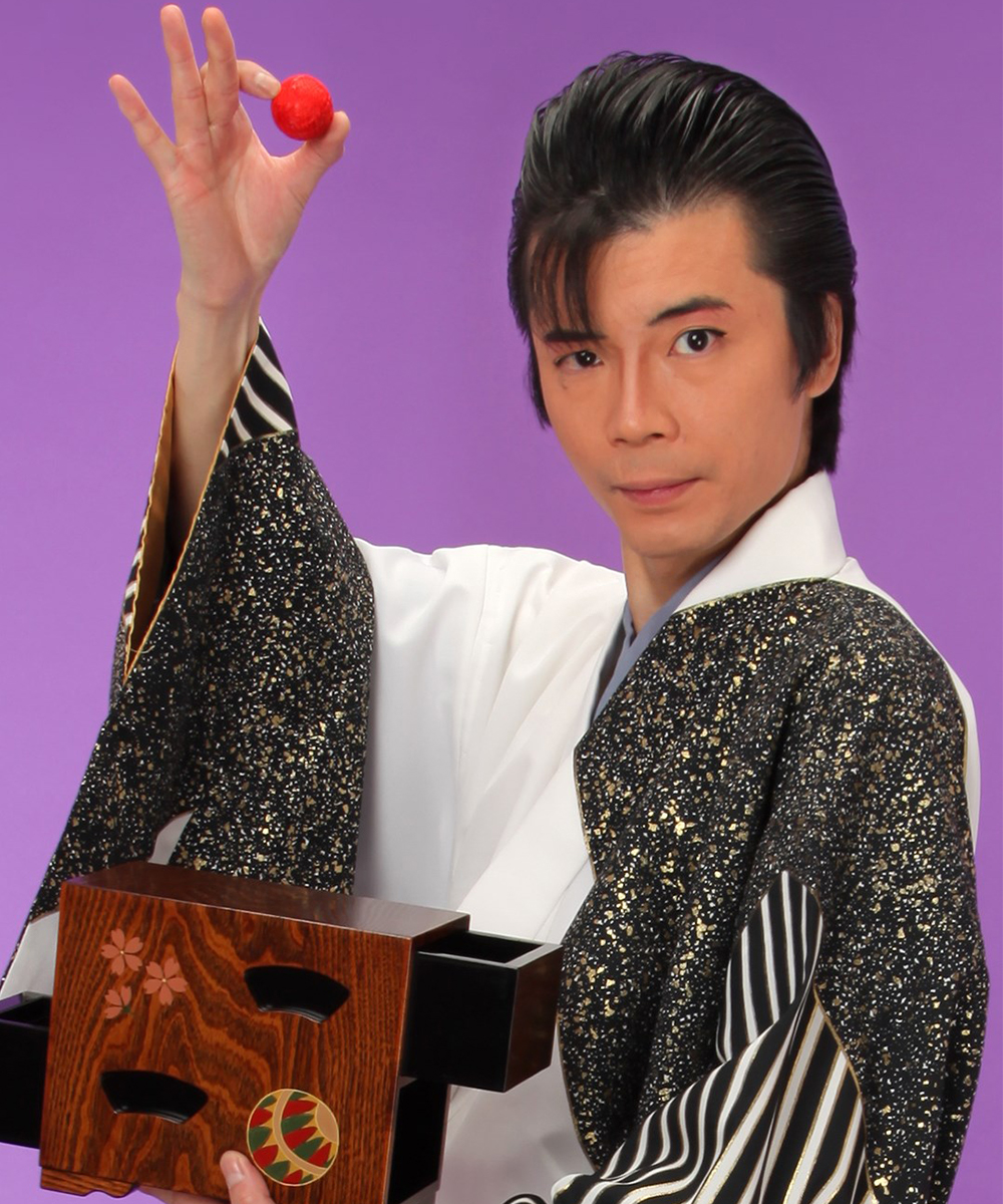 文化庁無形文化財に指定された伝統的な古典奇術「和妻」の正統継承者。マジックバリエーションは多岐に渡り、定番のテーブルマジック、音楽に合わせた軽快なステージマジック、巧みなトークで観客を巻き込み盛り上げるおしゃべりマジック、派手なイリュージョンマジックなど、あらゆるマジックができるプロのマジシャン。大人から子どもまで、観る人すべてを虜にします。